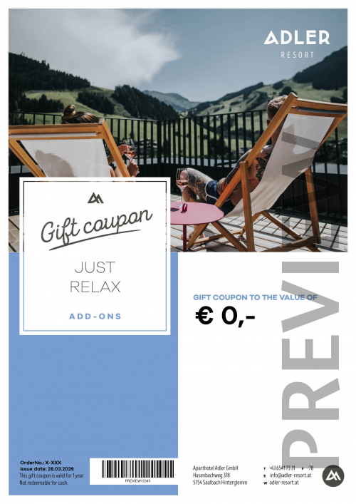 With this voucher you savour enjoy-moments like a massage to the full. But you can also redeem this voucher for an apartment-cleaning or at the ski-vip-rental.